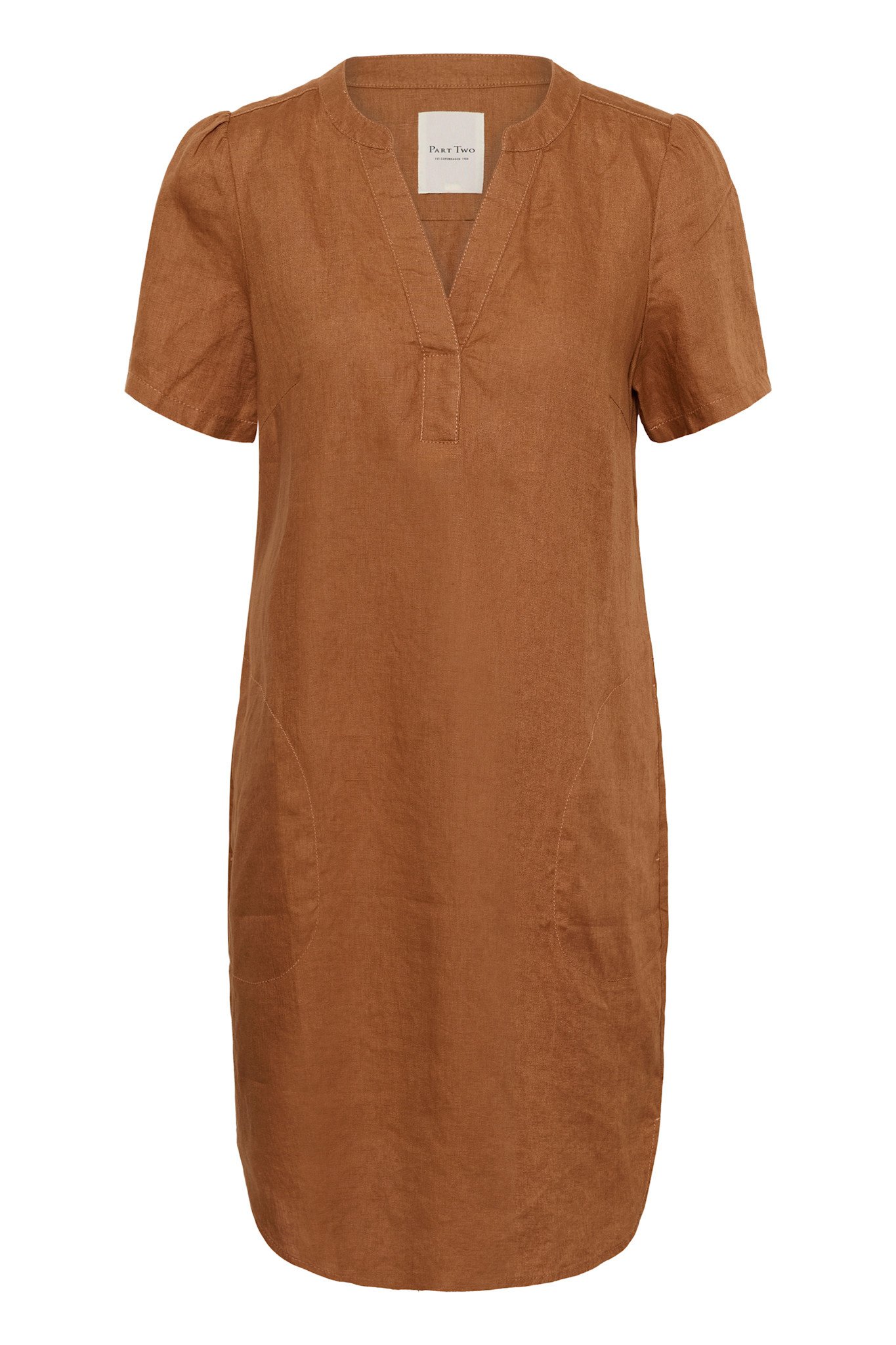 • The PartTwo Aminase Linen Dress in Argan Oil is a timeless warm-weather essential designed with a relaxed, loose silhouette that delivers effortless comfort and breathable ease.