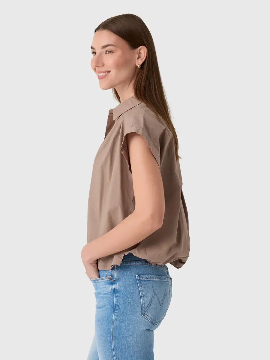Tailored from crisp cotton poplin, this top features a classic collar and full button front. Finished with a softly scooped hemline, it brings a polished yet relaxed feel to any look—perfect for effortless styling from workdays to weekends.