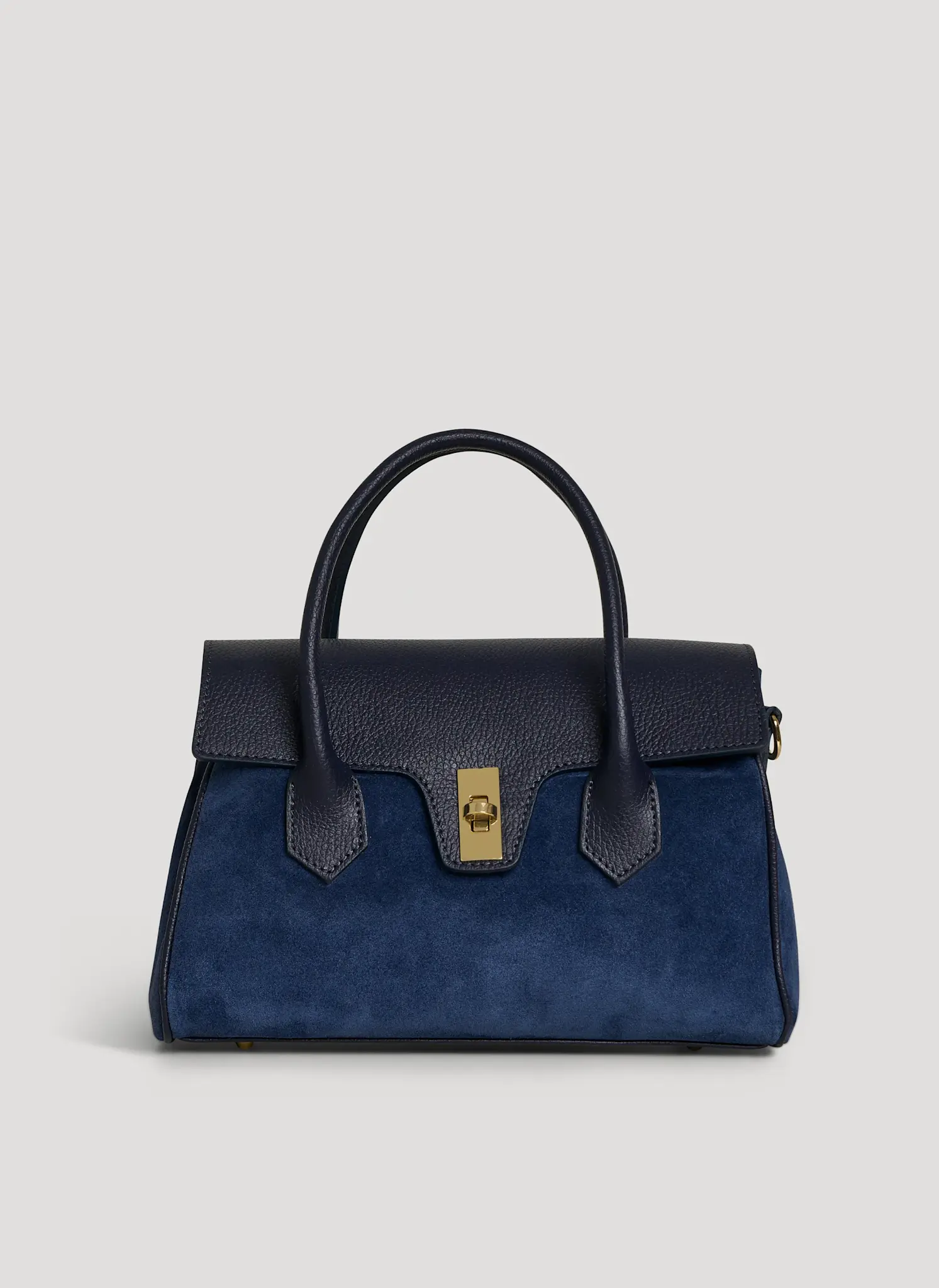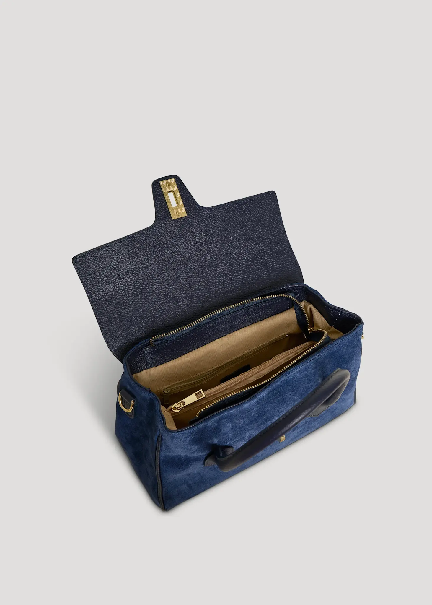 Cecile bag in genuine suede and Togo leather Made in Italy with light gold accessories.