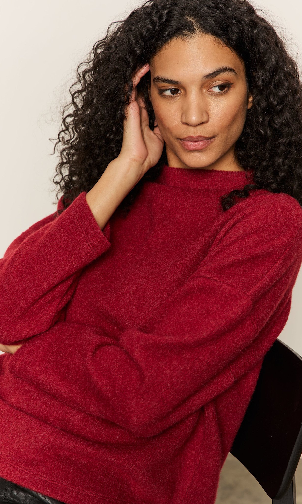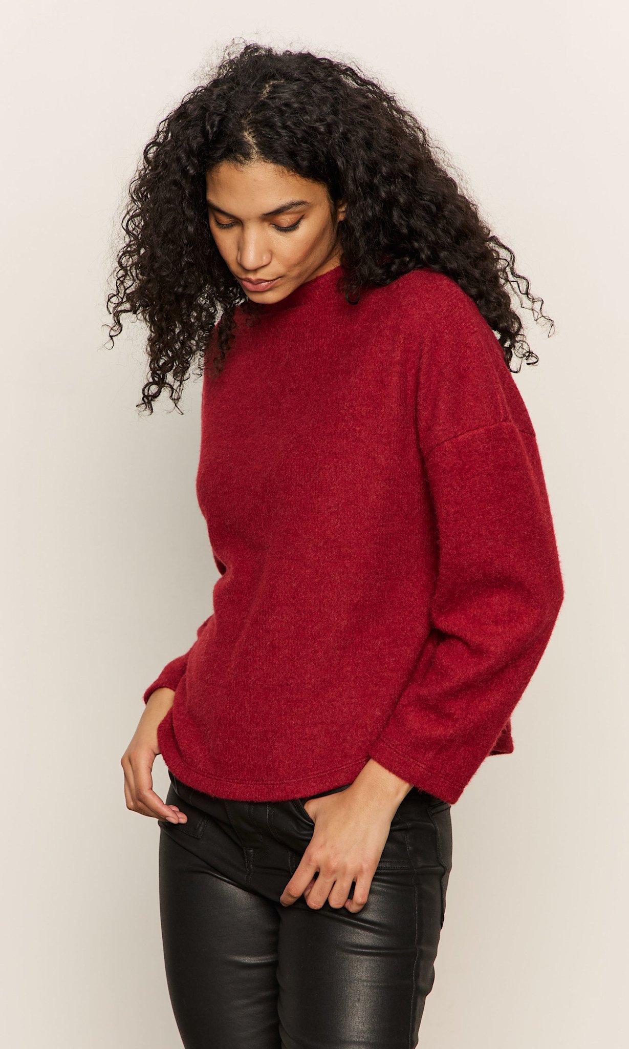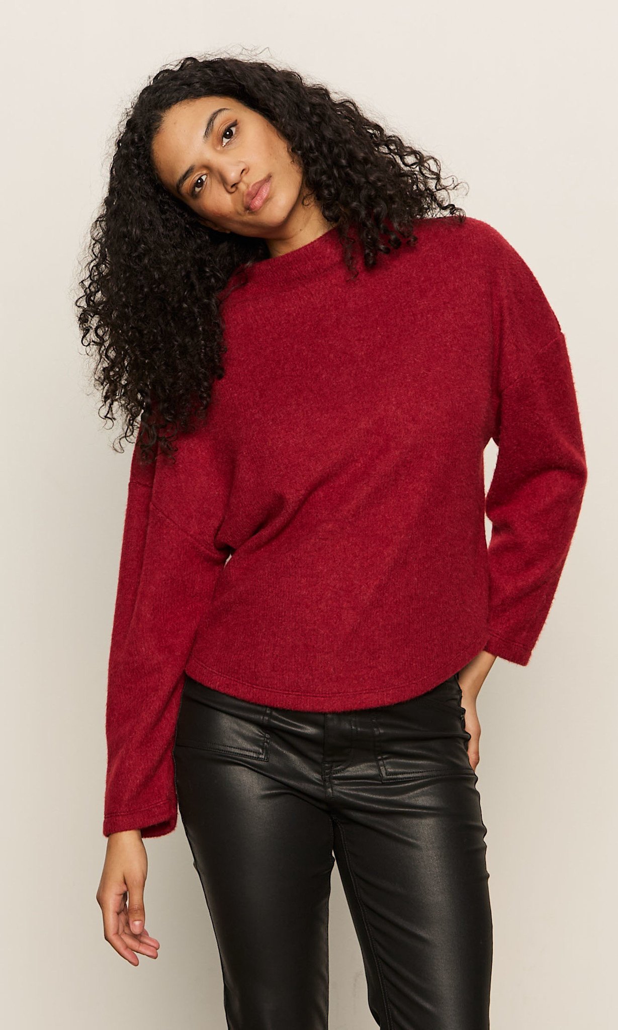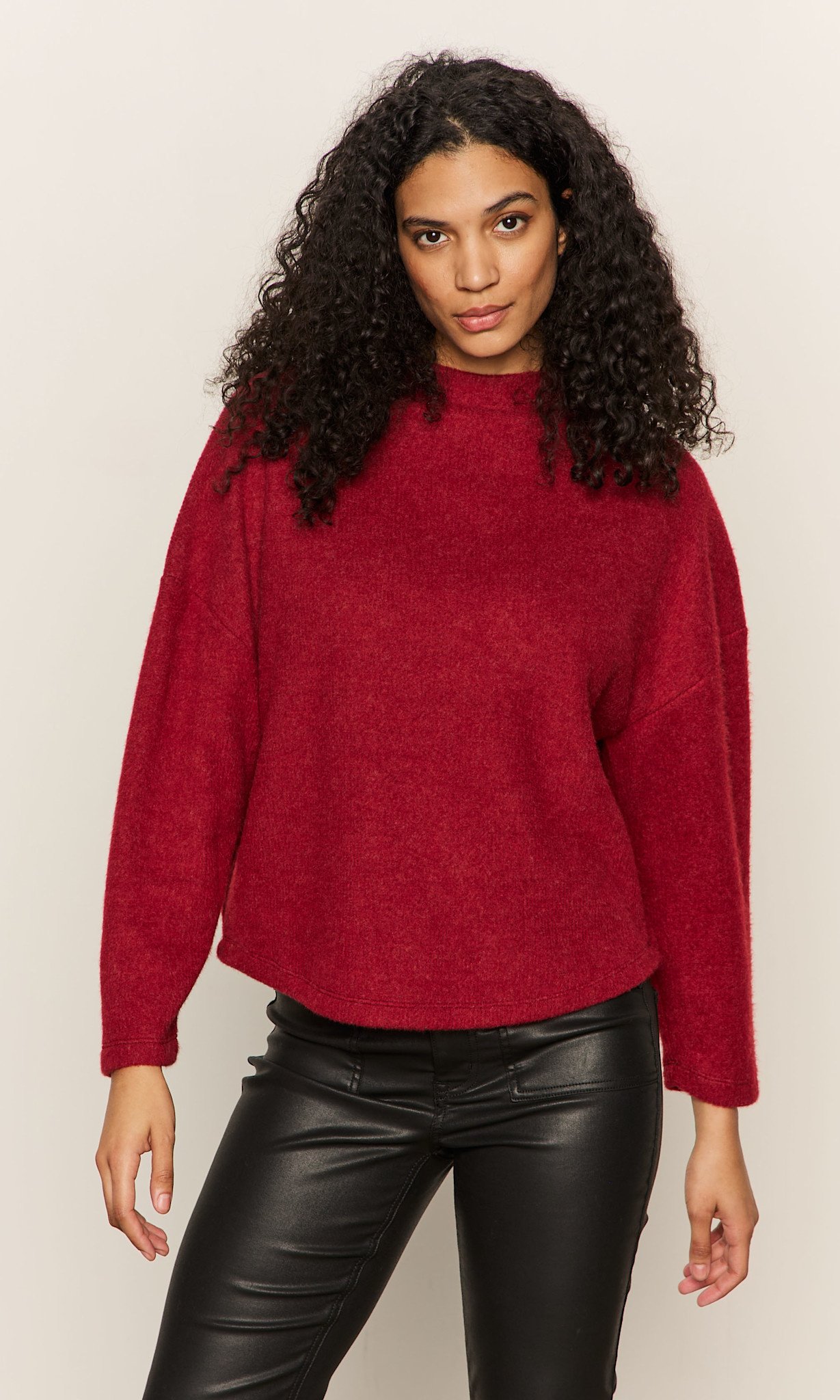Mock NeckLong SleeveBrushed Knit TopPull OnThick Brushed Jersey Knit
