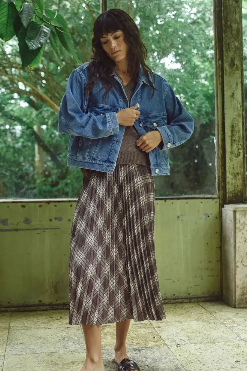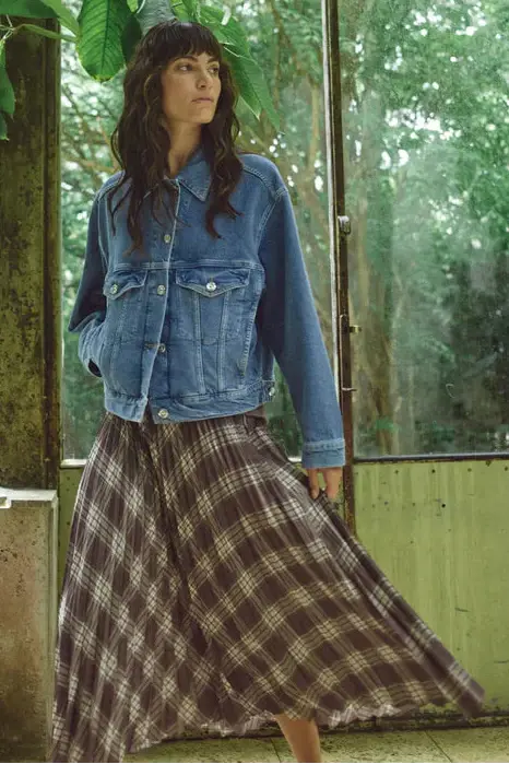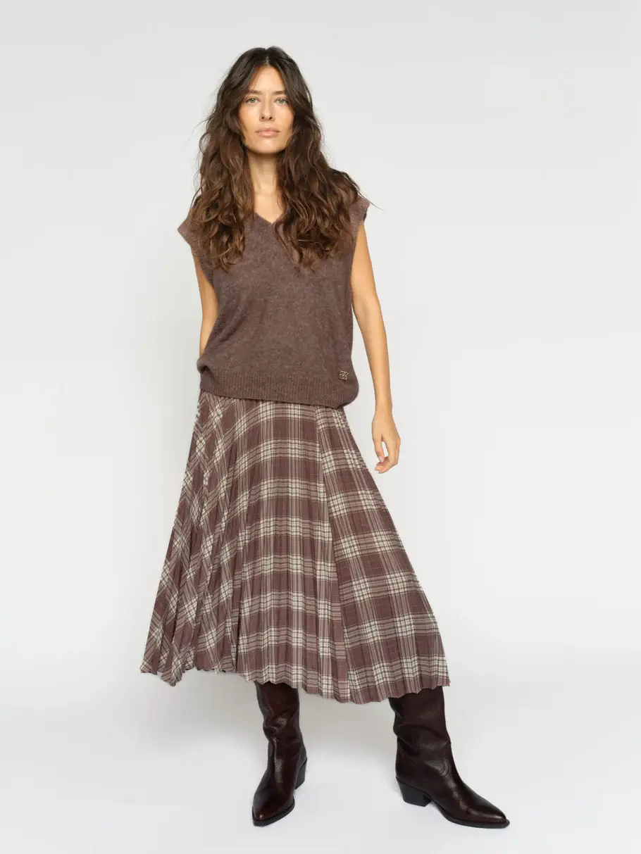 • This elegant pleated skirt is crafted from 100% recycled polyester and designed with a flattering mid-waist and elastic waistband for a comfortable fit. The checked pattern adds a modern twist to the timeless silhouette.