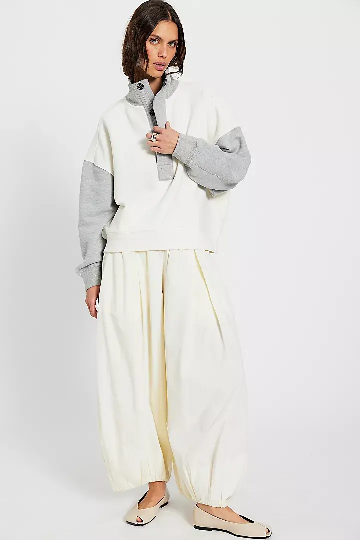 Dropped shoulder seamsBanded hem and sleevesUltra-soft knit