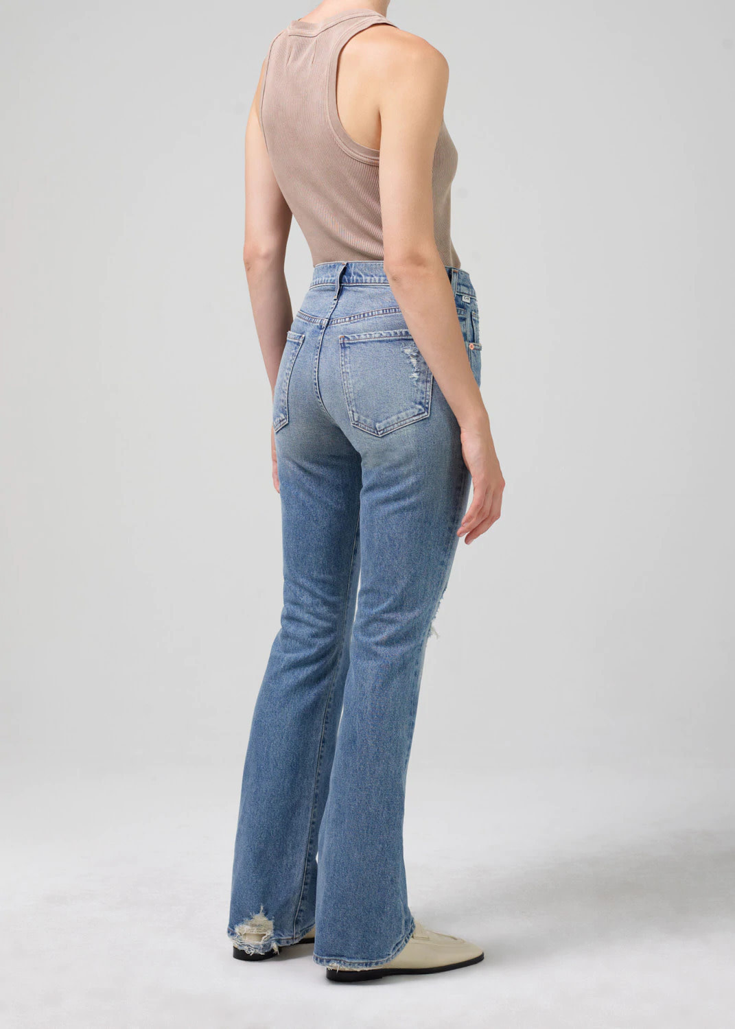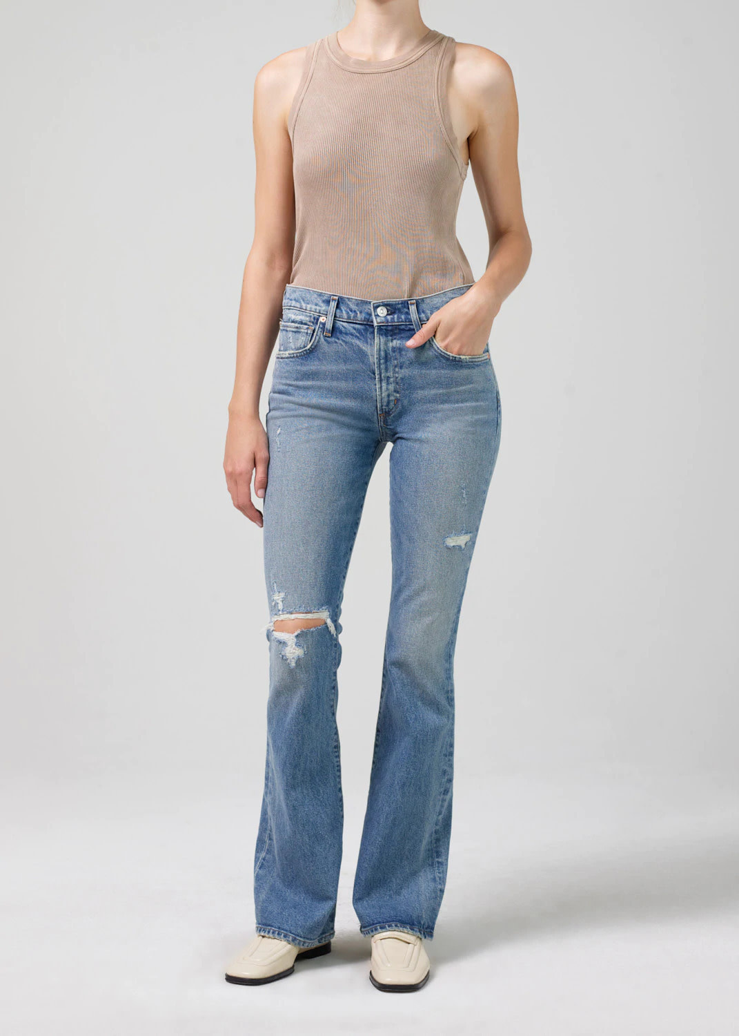 Looks Like: Medium indigo with slight destructionFeels Like: Comfort stretch denim with a super soft hand for all day wearability