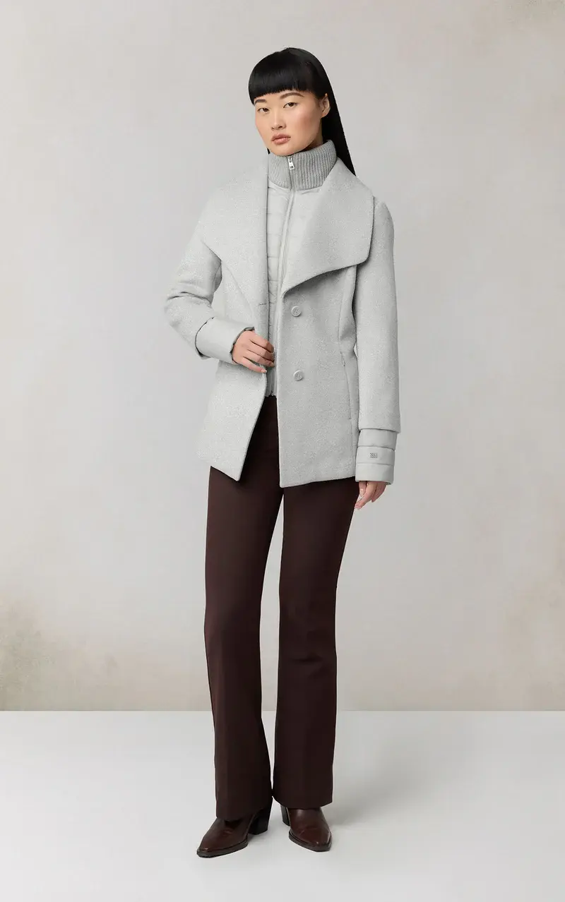 Shell: 55% wool, 40% polyester, 5% other fiber.Lining: 100% recycled nylon. Filling: 100% polyester.