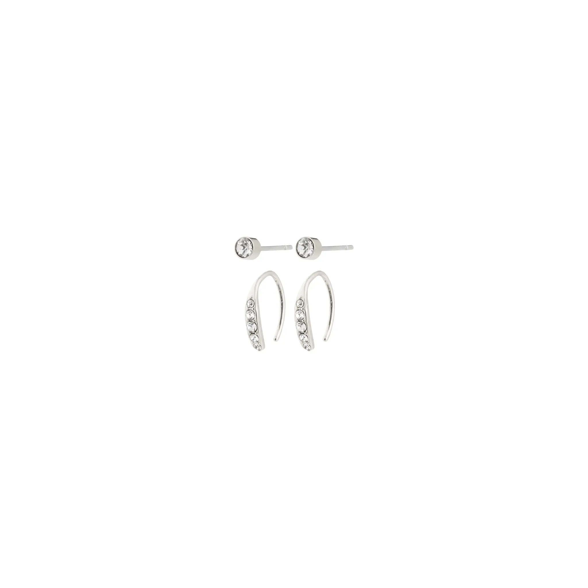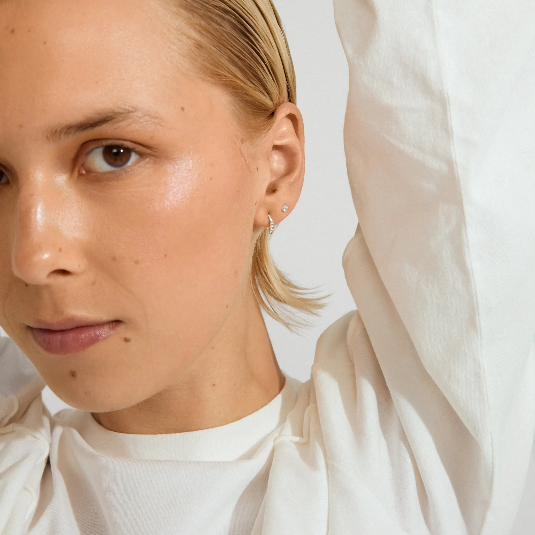 The small silver-plated studs with Preciosa crystals are your go-to everyday essentials, while the curved ear hooks provide a next-level touch when you want to spice up your look. Mix & match them depending on whether you want to go low-key or all-in for a stacked ear-candy look. Style them with a messy bun or sleek braids for the ultimate fashion-forward vibe. Made from 94% recycled materials – fashion with an eye for the environment.
