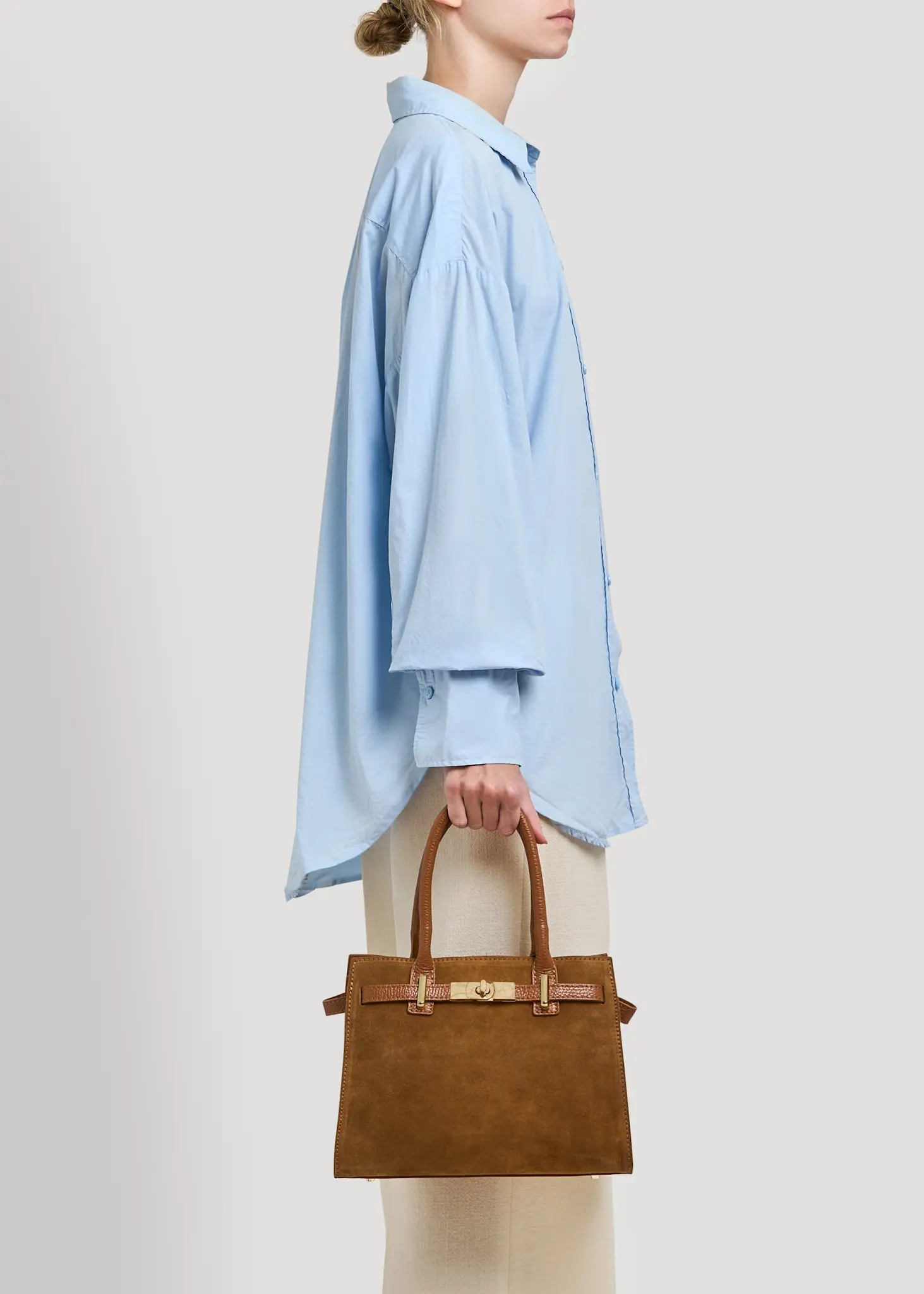 Grace bag in genuine suede and Togo leather Made in Italy with gold-colored accessories.