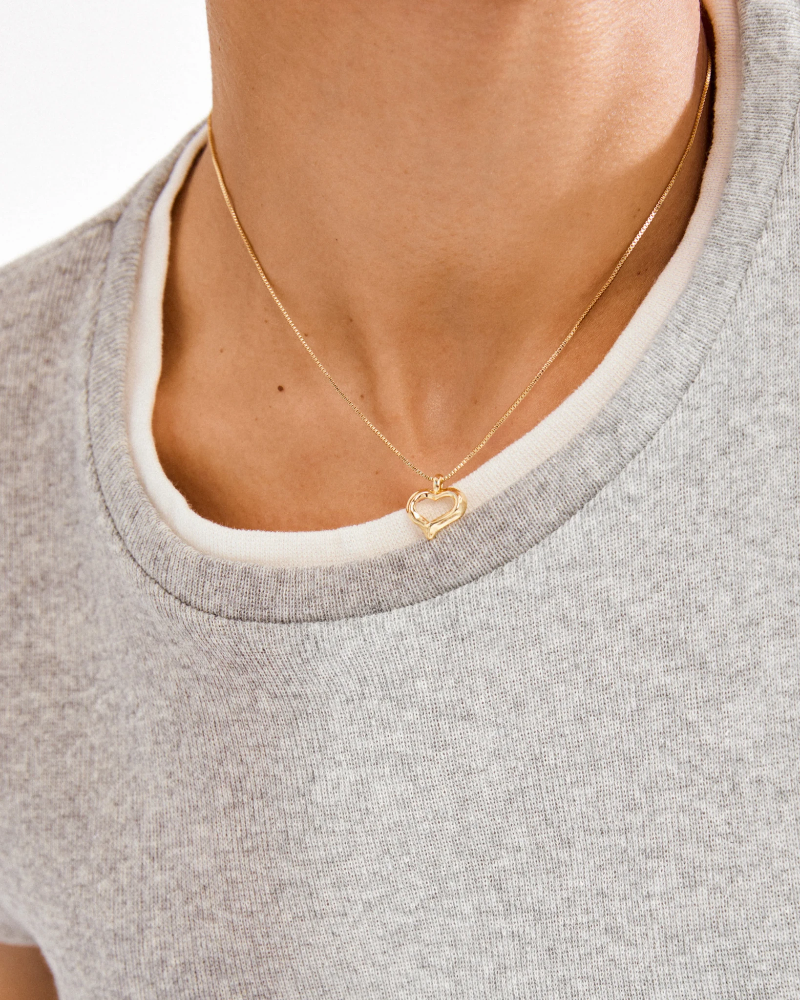 The design combines sweet symbolism and minimalist coolness – perfect as a personal touch for both basic fits and dressed-up moments. Style it solo for a stylish expression or as part of a stacked look with vibes of love, light and layering. The necklace measures 40 cm + 12 cm extension chain and is made from 99% recycled material – fashion with consideration for our planet.
