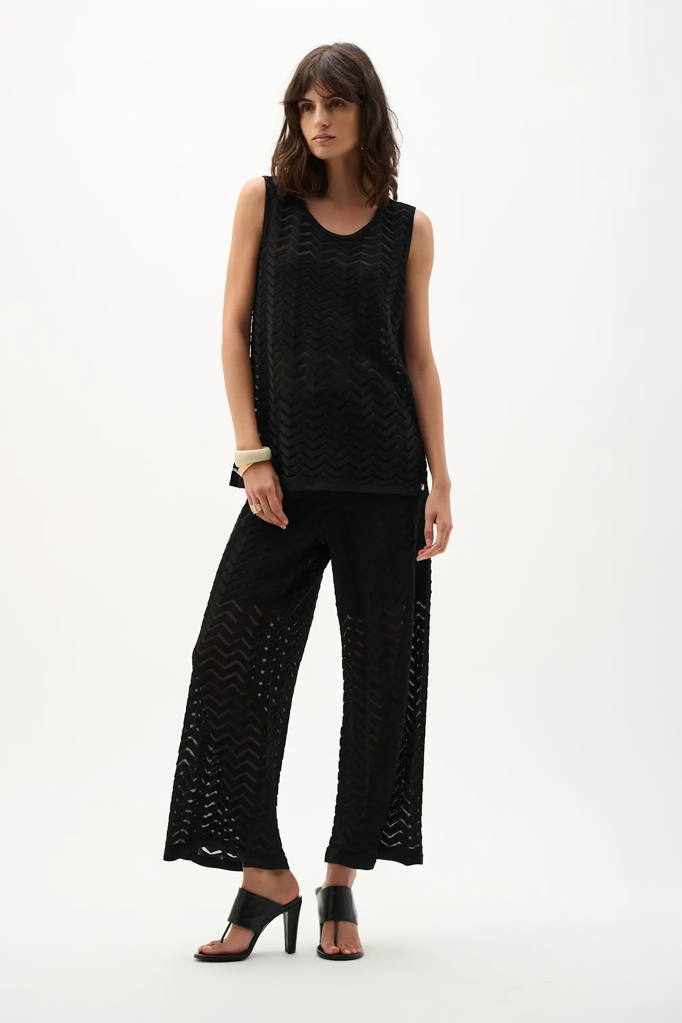 Chevron stitch design with sheer lower leg