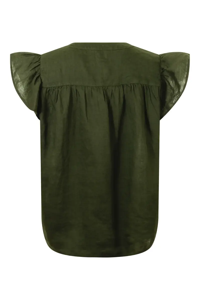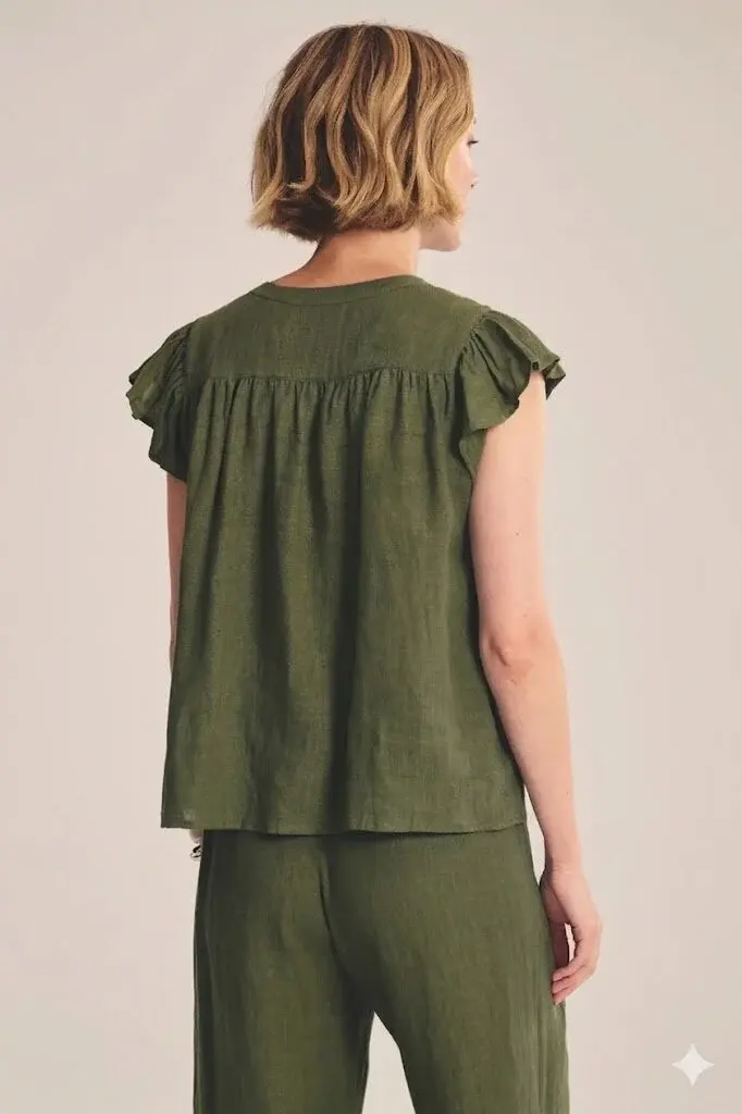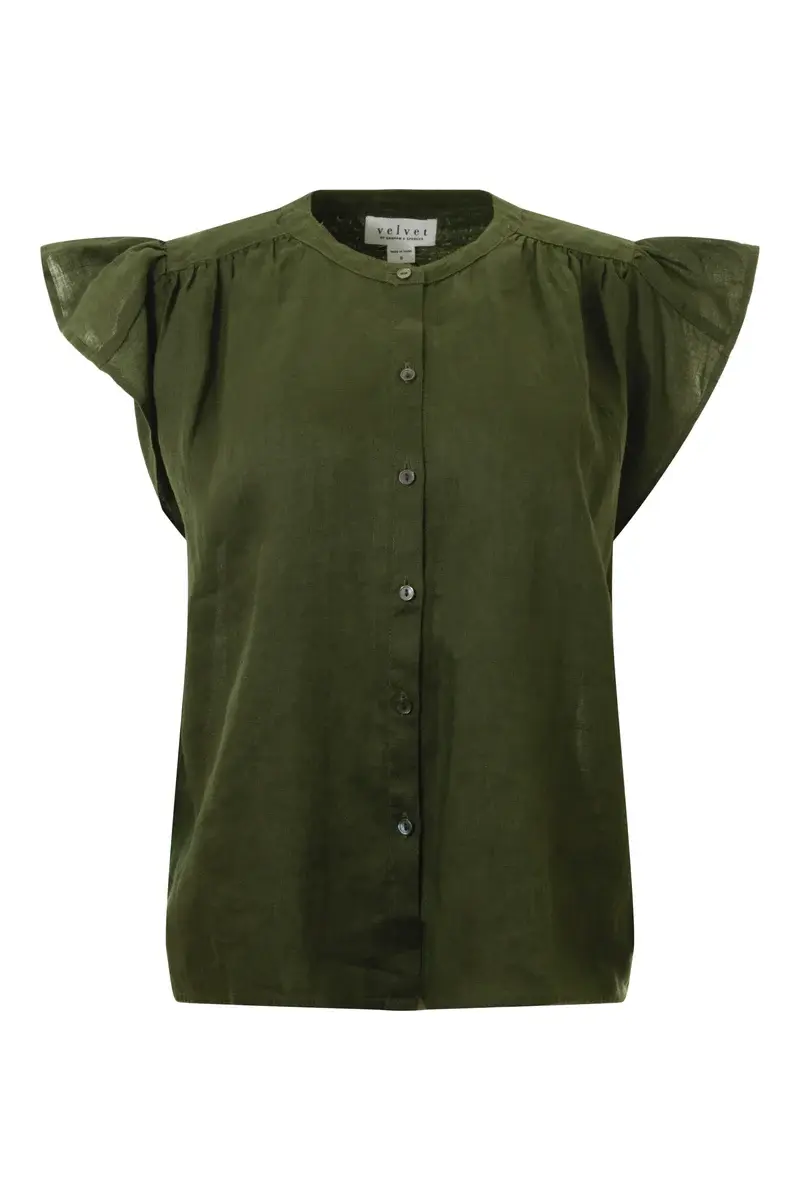 • Add a touch of elegance to your wardrobe with this button down tee. This linen top features a front button closure for a sophisticated and chic look. Elevate your style with this premium piece.