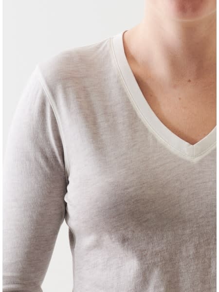 Patrick Assaraf Pima Classic Reverse Spray LS V-Neck Java