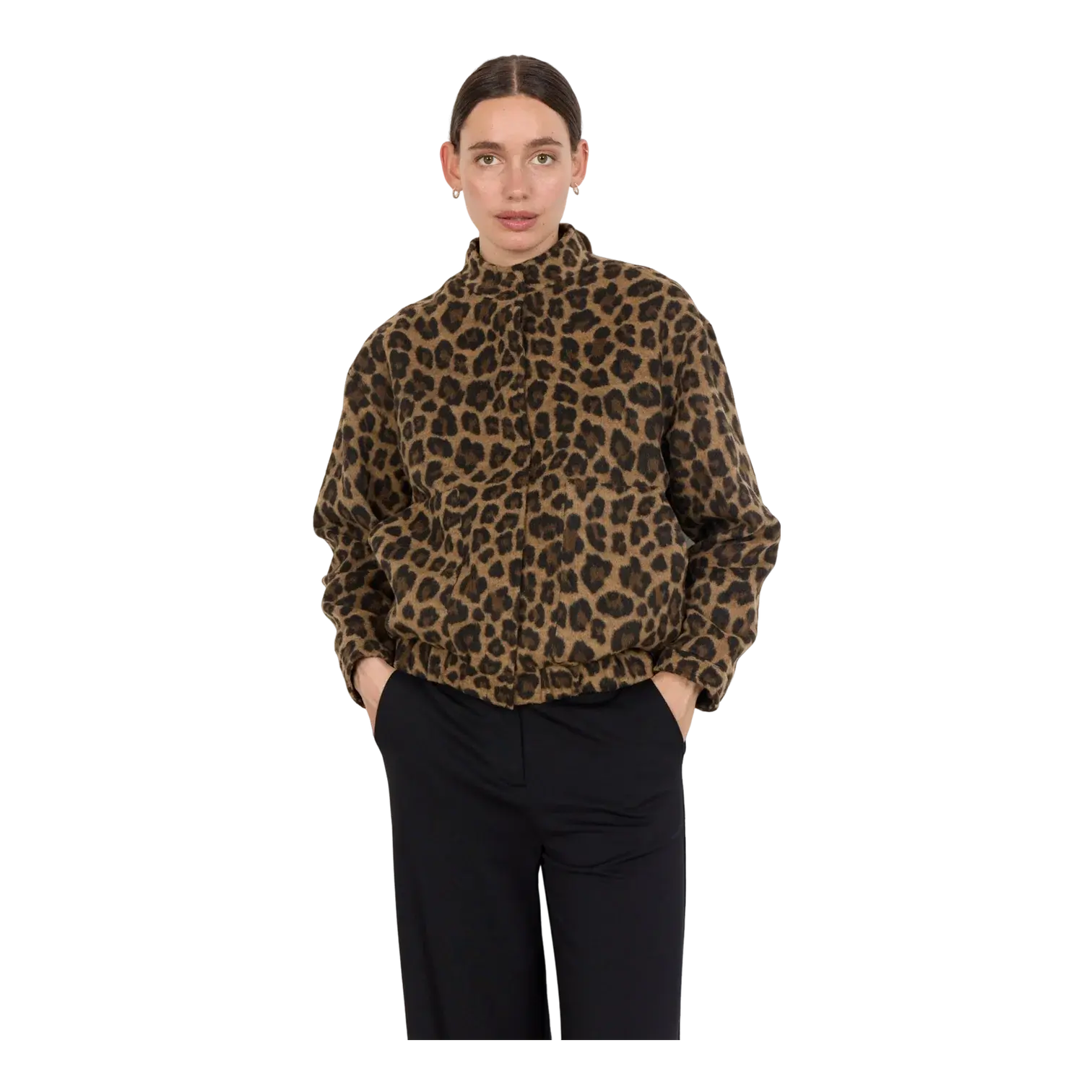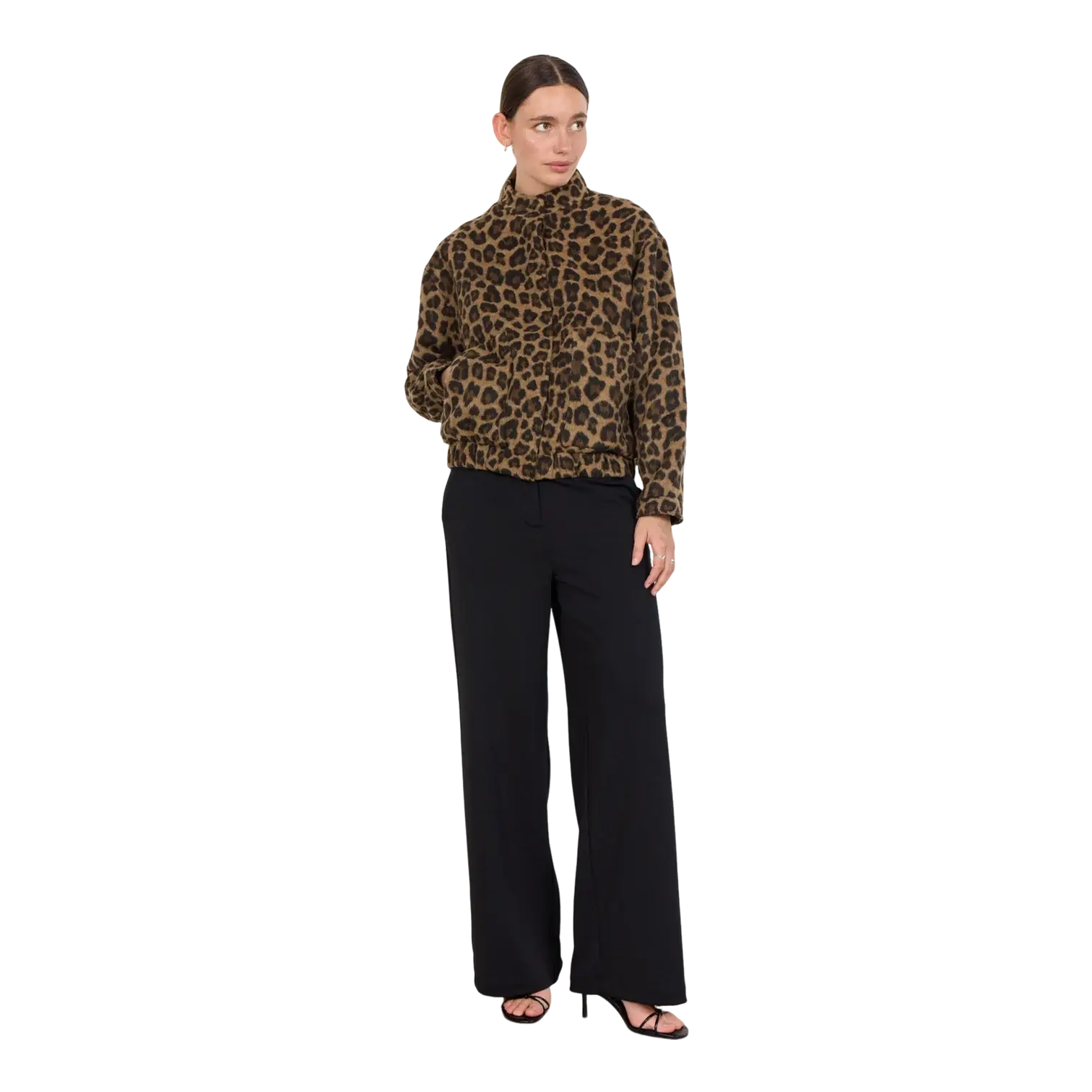 • This Jacket has a brushed, textured feel and is designed with a high collar, hidden fastening, a relaxed fit, two front pockets, elasticated hem and an eye-catching leopard print. Wear it with solid-colored pants or layer over a simple top for a bold look