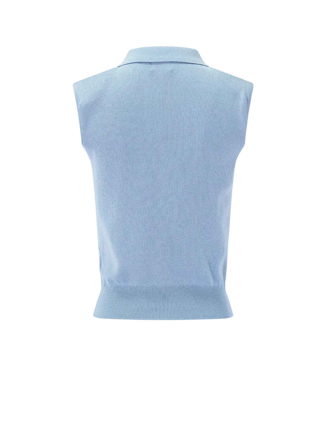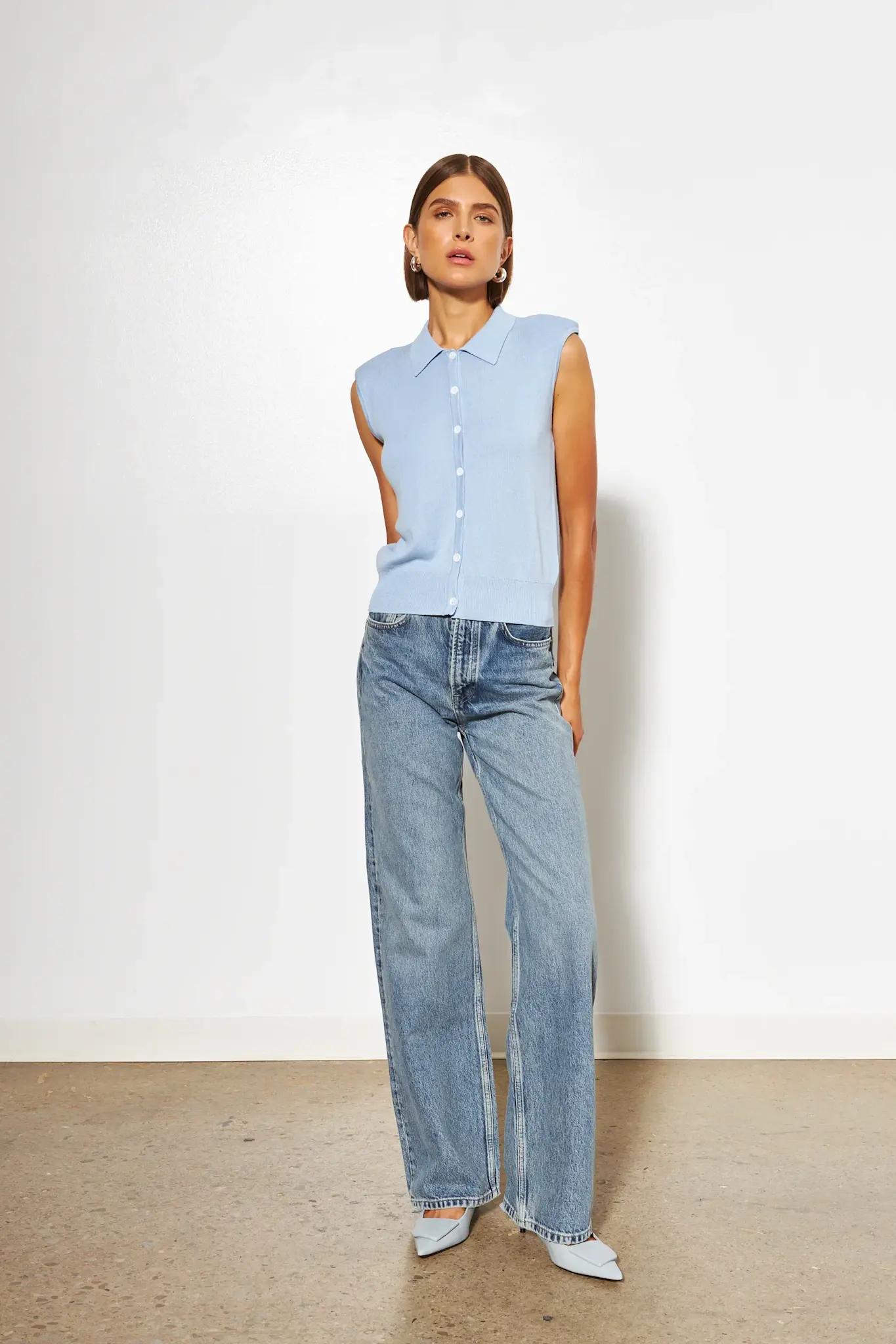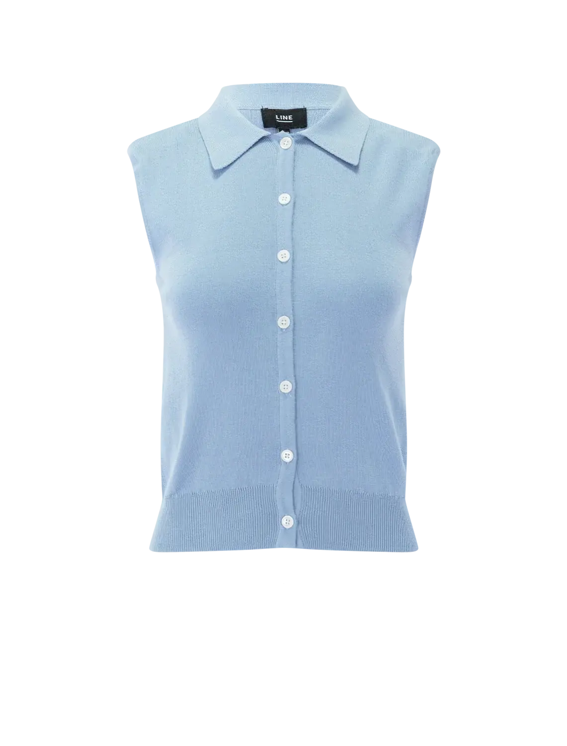 • The Line the Label SHILOH Vest Sweater in Clear Water is a refined sleeveless knit designed for modern, effortless style.