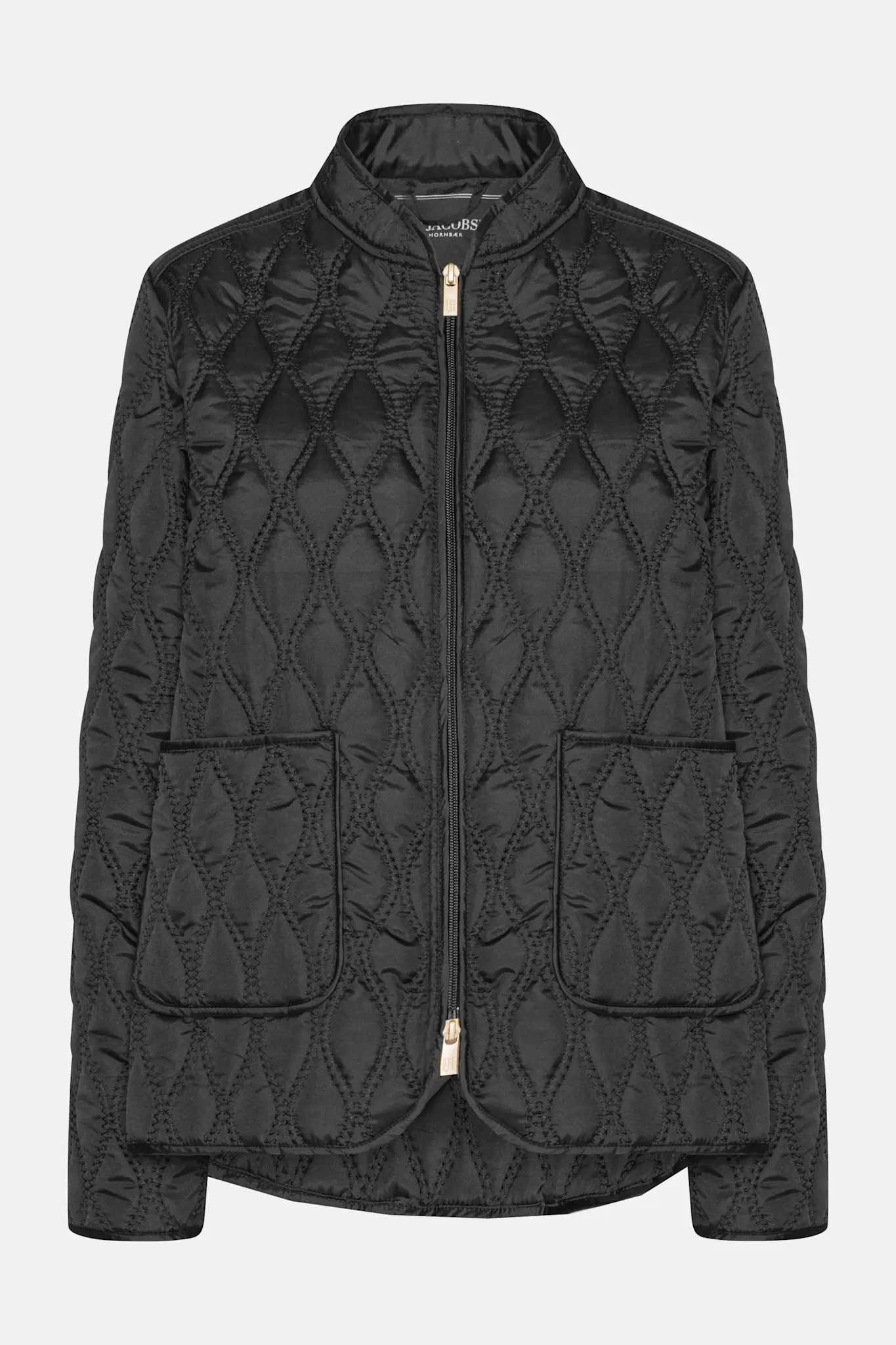 • A short quilted jacket with a two way zipper at centre front and IJH logo zipper puller. Featuring a mock neck and large patched pockets. Slits at side seam enhance movement, making it a perfect trans-seasonal jacket.