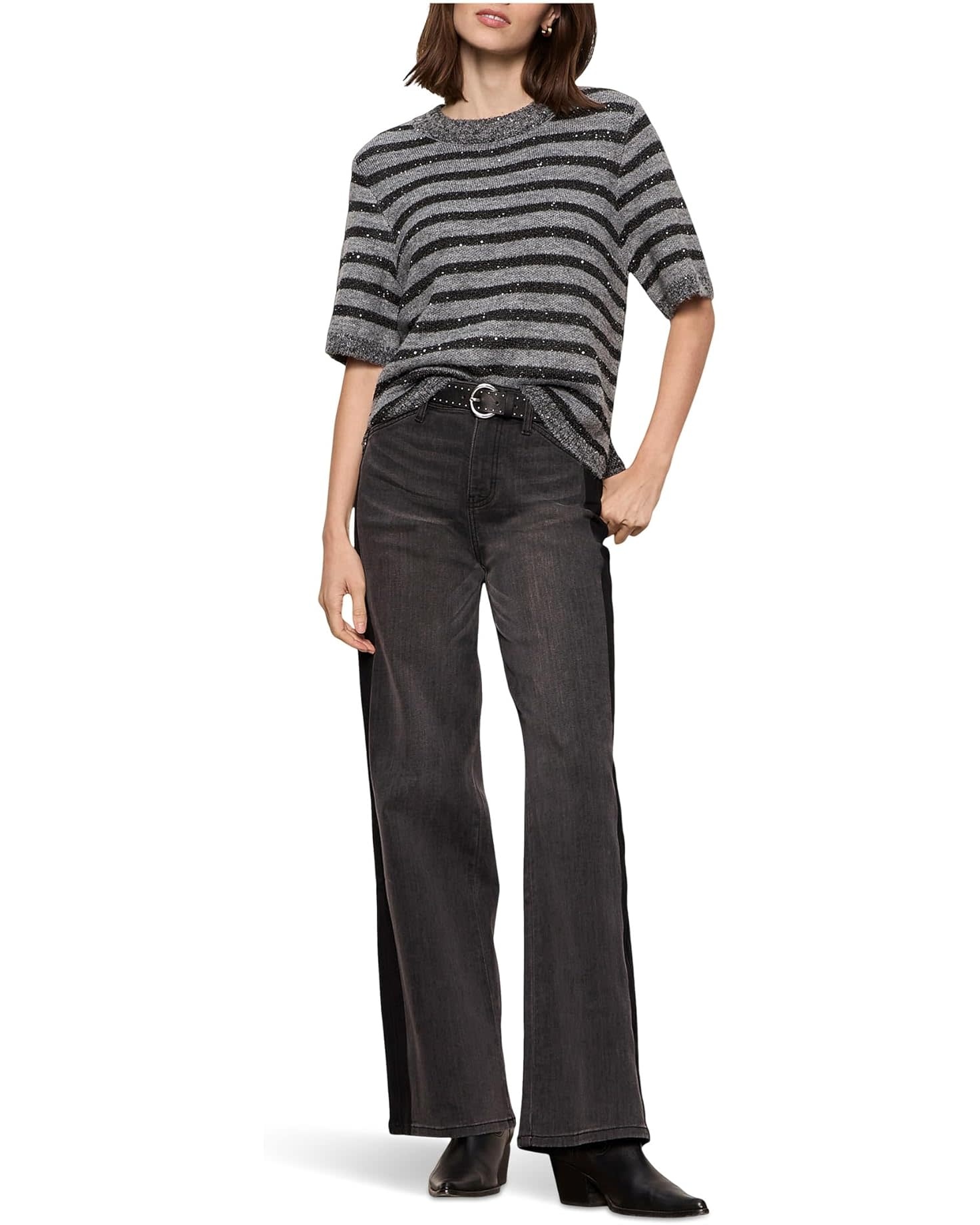 Sanctuary Short Sleeve Shine Sweater Tee Grey w/ Black