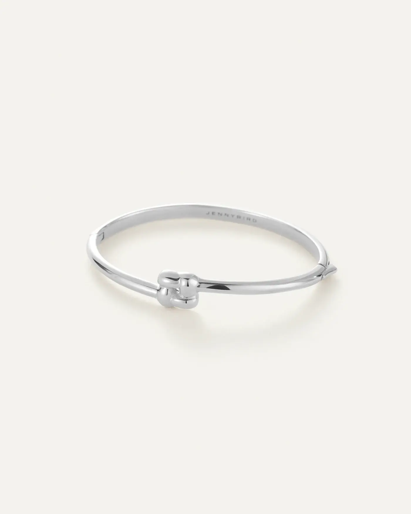 This silver bracelet opens and closes with a hinge and tab lock closure. To open, push down on the highest point of the clasp before pulling the bangle open. To close, listen for a "click" to ensure tab is locked properly. Note: this design wears best when the closure is secured on the inside of your wrist.