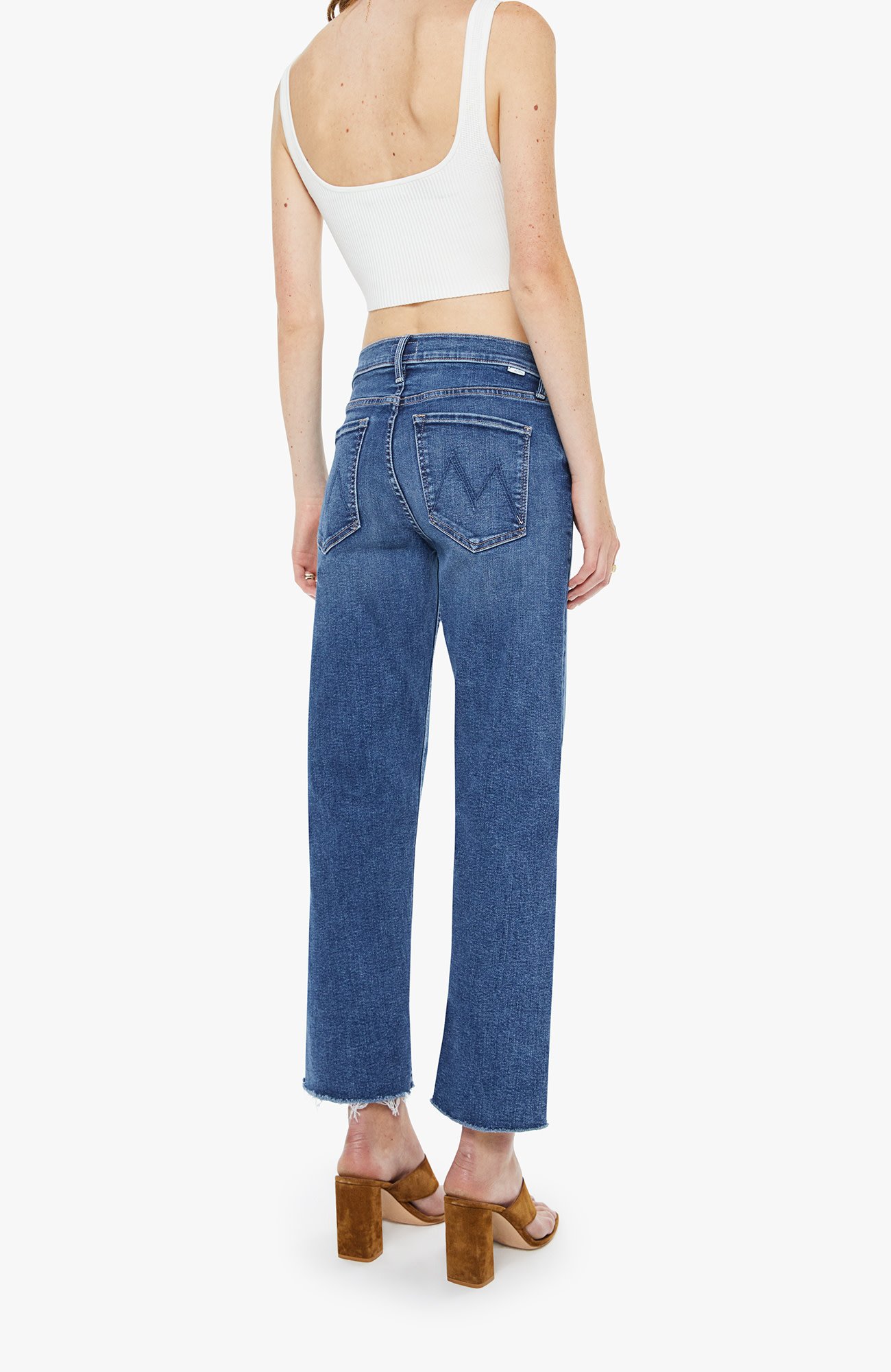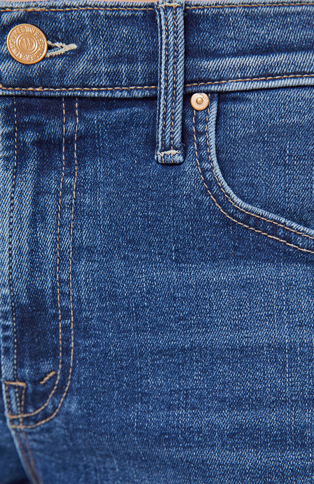 • Hidden treasure. Mid-rise straight-leg jeans with a zip fly, ankle-length inseam and a frayed hem. Made from stretch denim, Prized Possession is a mid blue with subtle whiskering and fading at the knees.