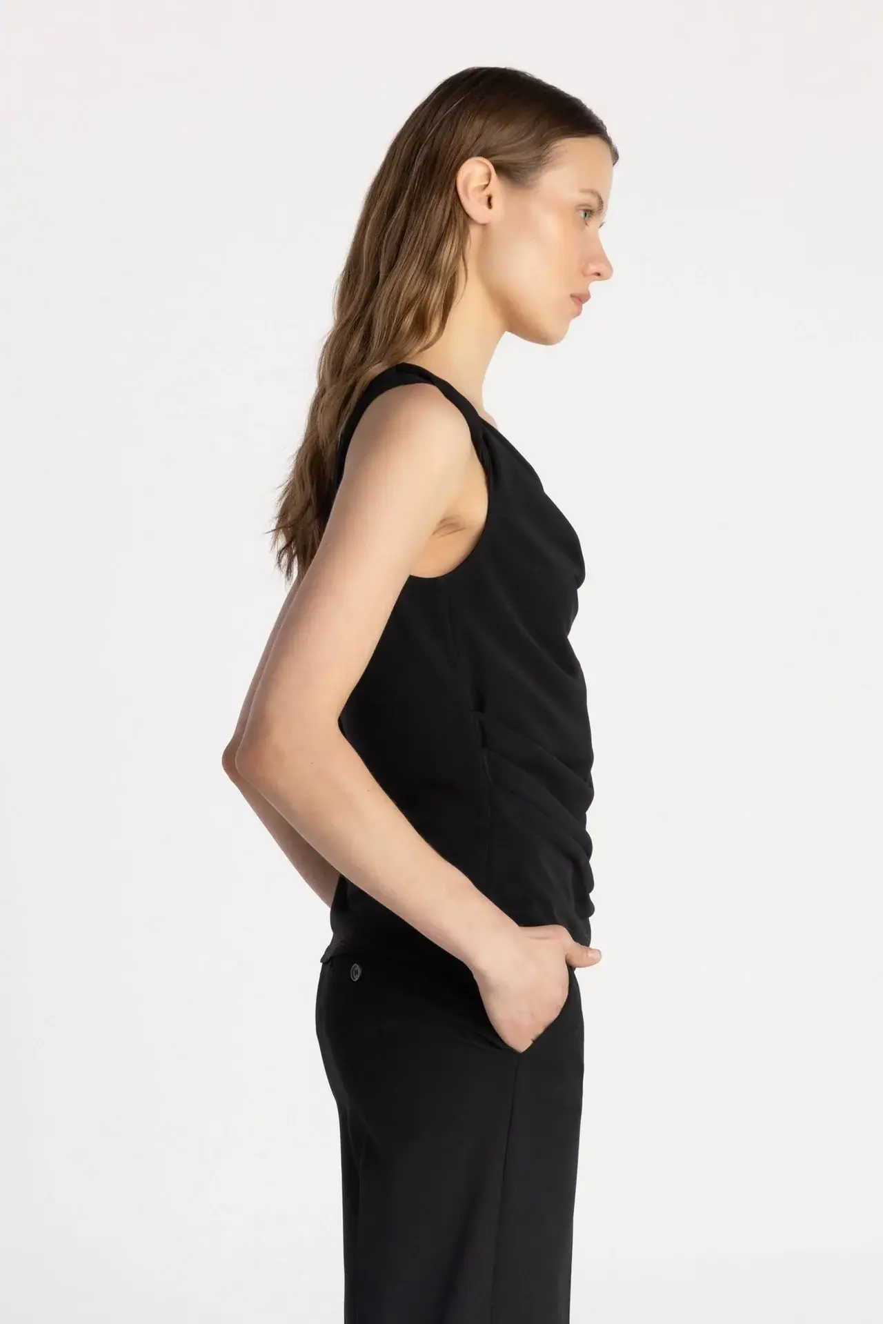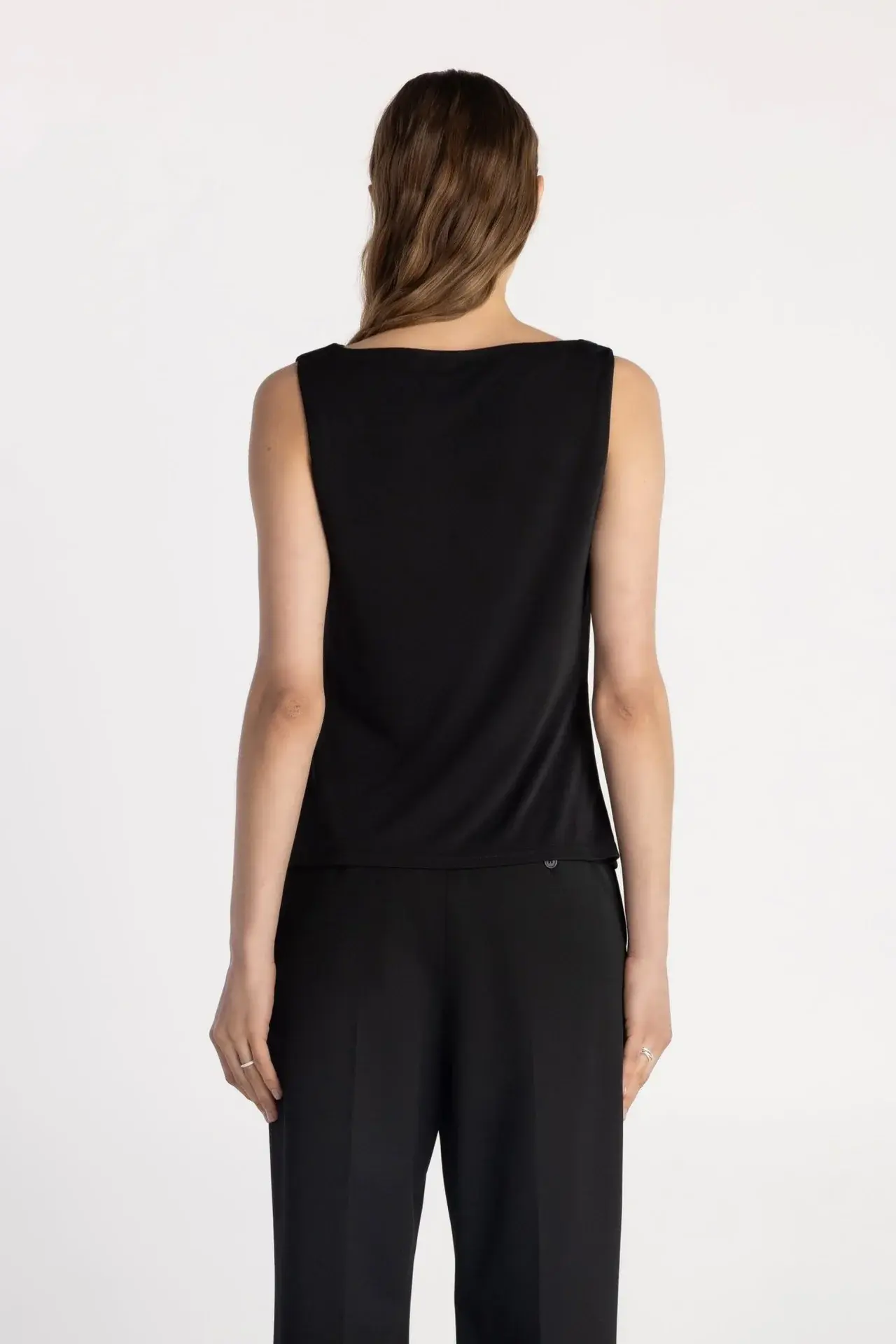 • The Salo Drape Top delivers refined simplicity with a flattering silhouette. Crafted from cool-touch matte jersey, this lightweight and breathable sleeveless style features a softly draped cowl neckline for elegant movement.