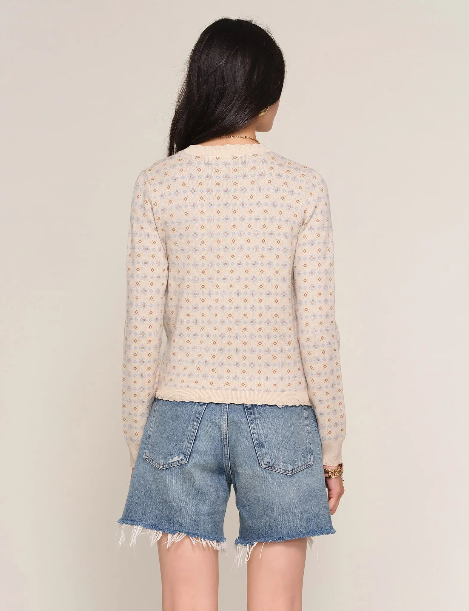 Soft melange knitV-neckNovelty jacquard pattern