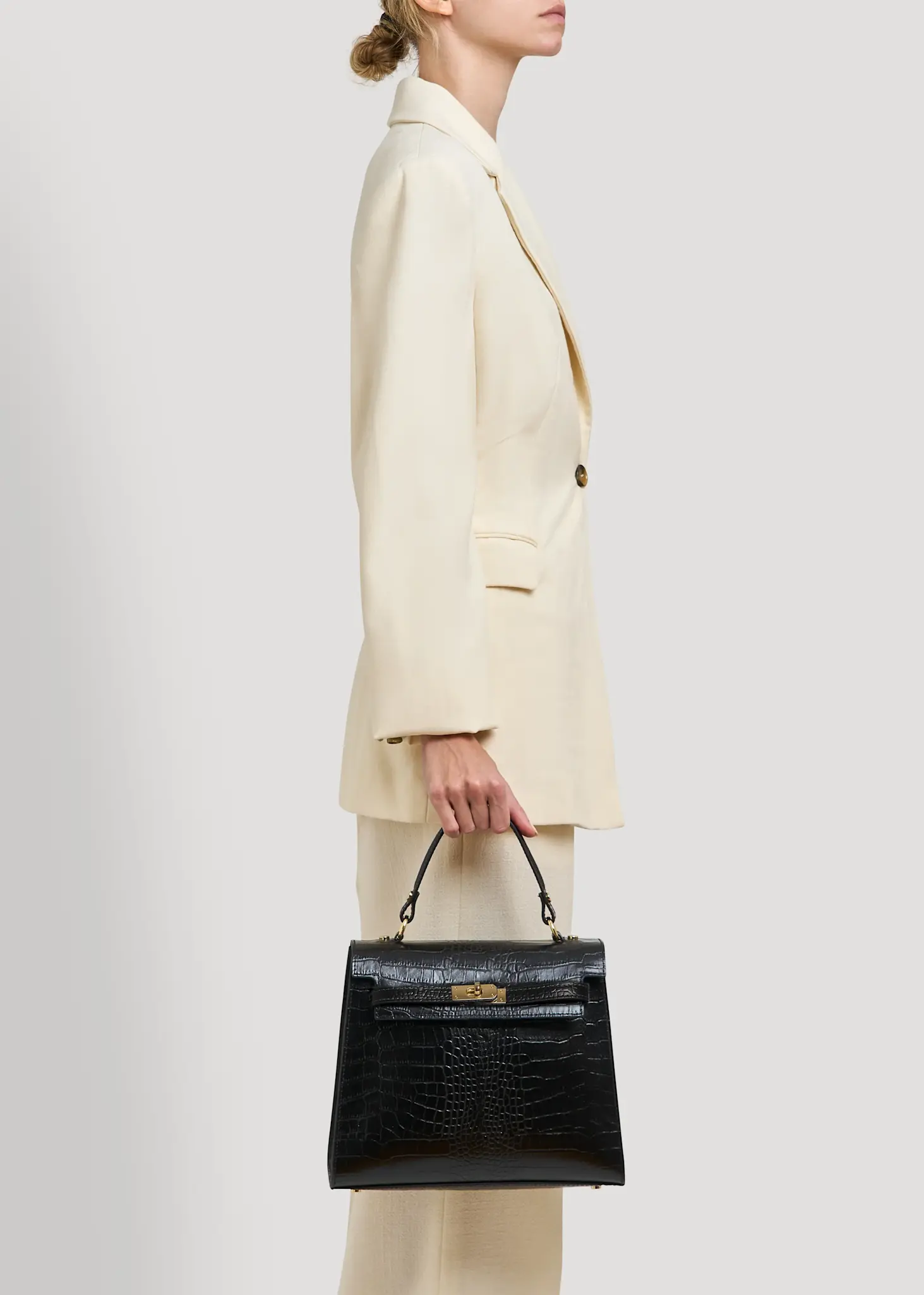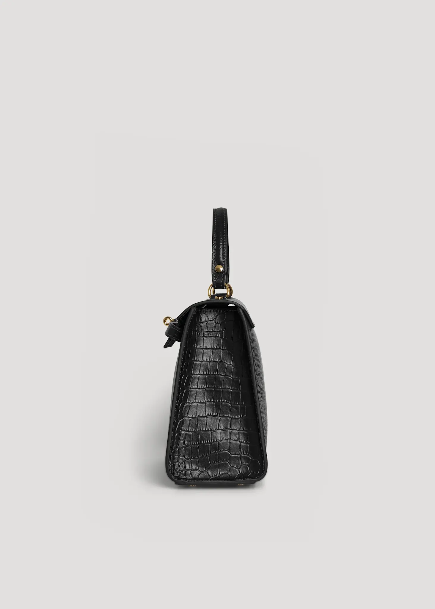 Zaira Limited Edition bag in genuine Coco leather with Made in Italy shoulder strap and light gold-colored accessories.